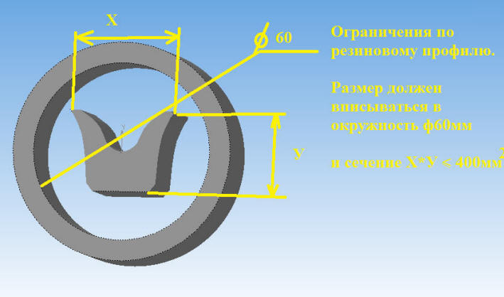Размер профиля должен вписываться в окружность ф60мм.